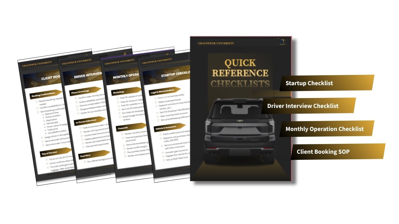 Startup Checklist – A step-by-step checklist to help you launch your black car business the right way from the beginning.